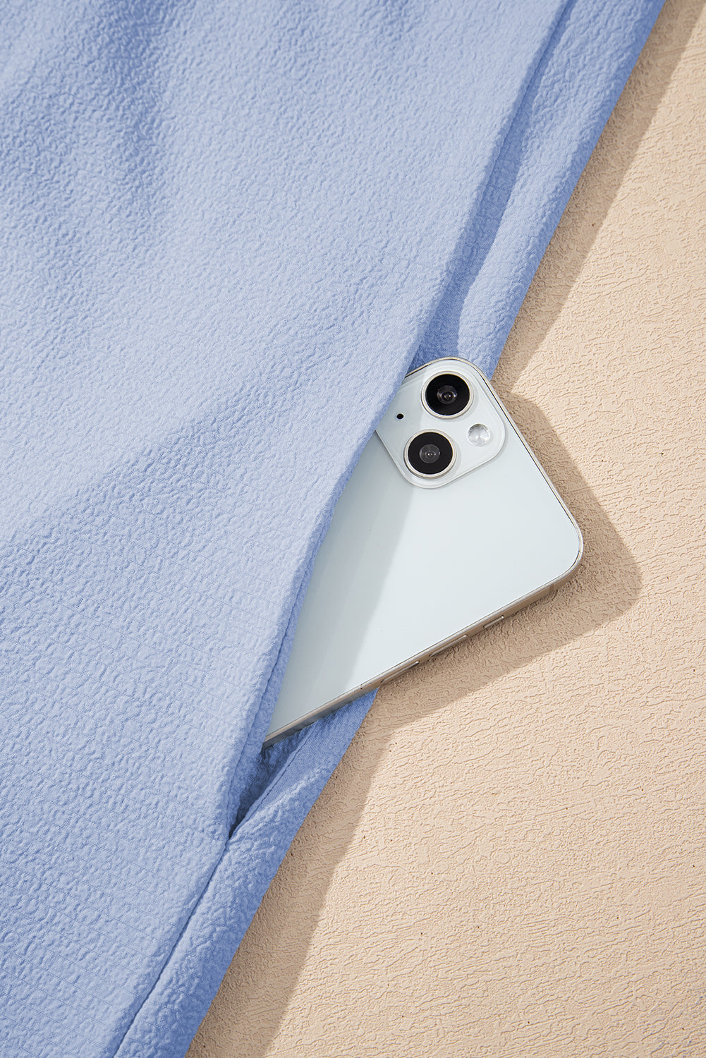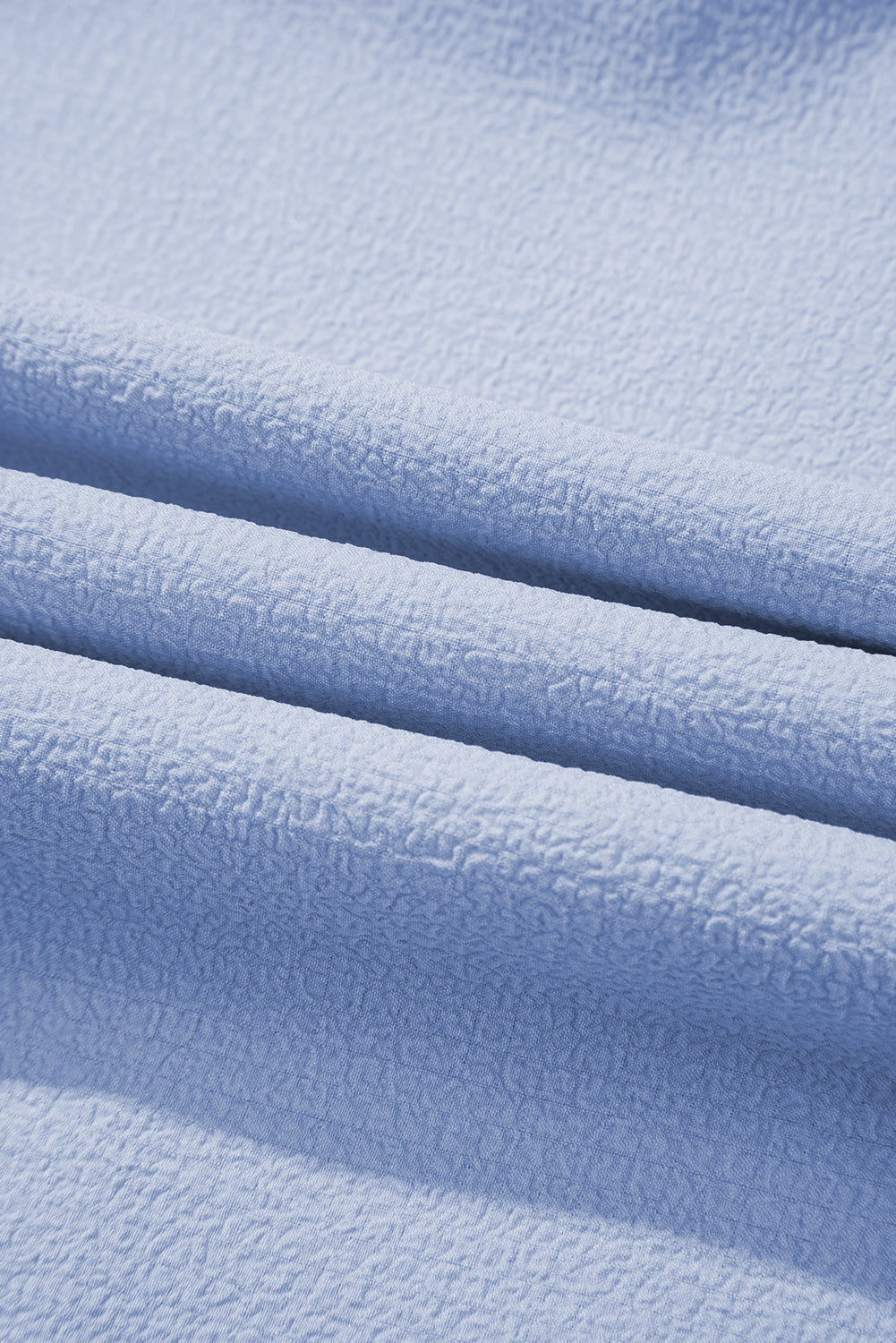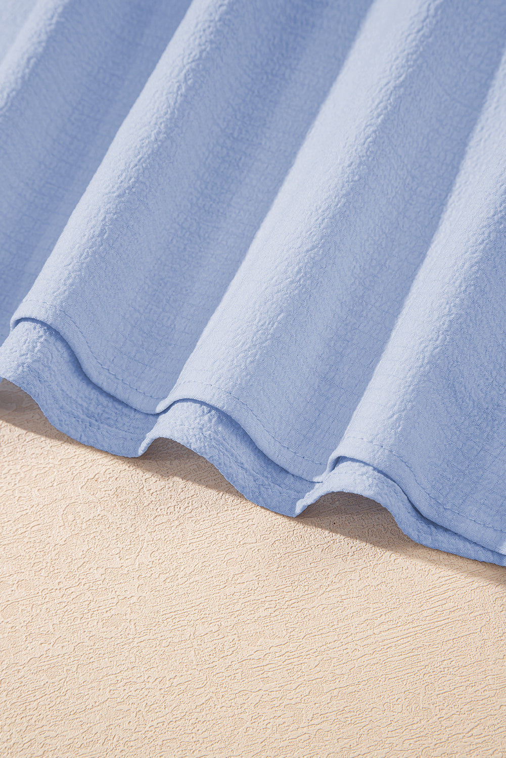 Beau Blue Textured Flutter Sleeve Square Neck Bow Back Mini Dress