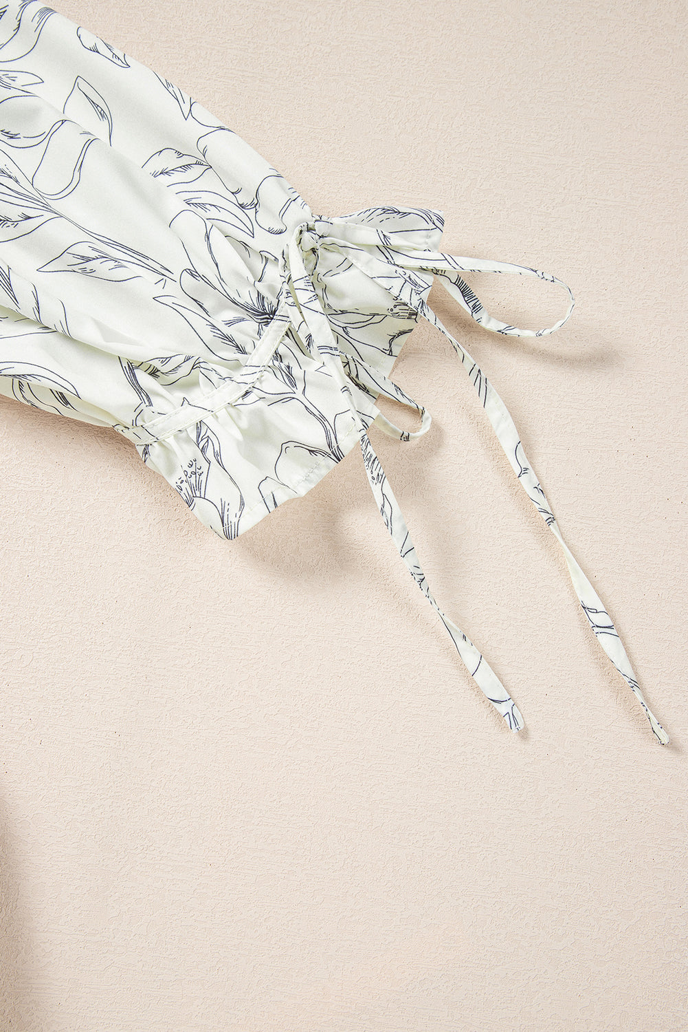 Beige Floral Print Square Neck Shirred Back Puff Sleeve Mini Dress