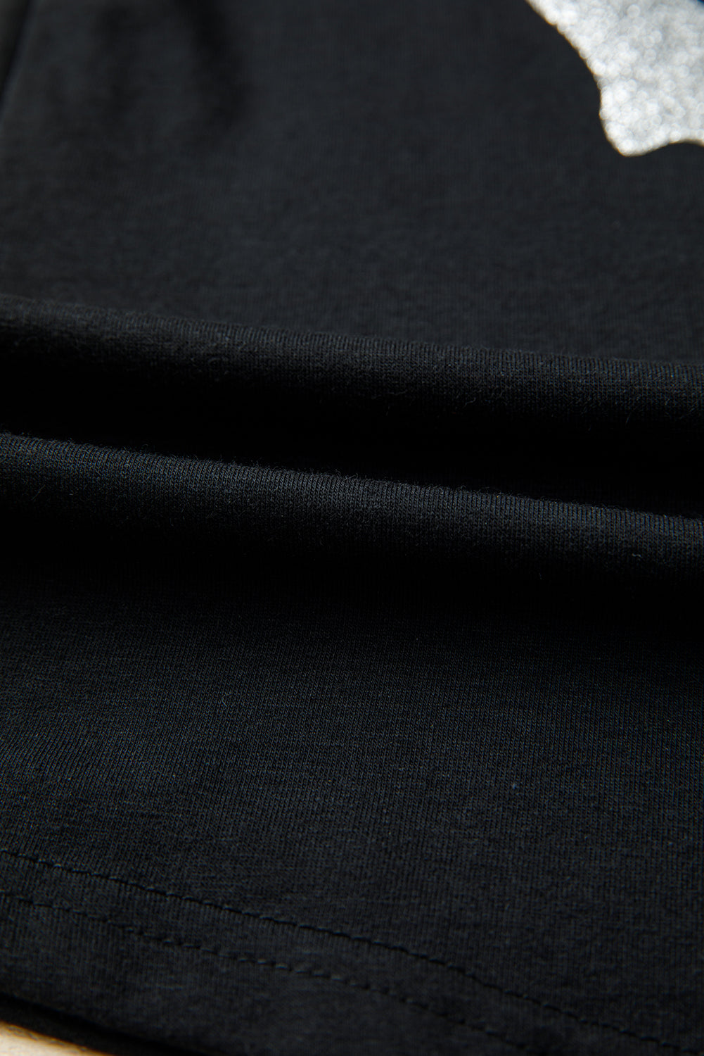 Black Glitter Ghost Pattern Crew Neck Halloween T Shirt
