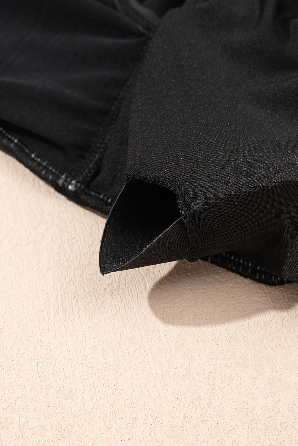 Black Ric Rac Trim Contrasted Patchwork Cutout One Piece Swimsuit