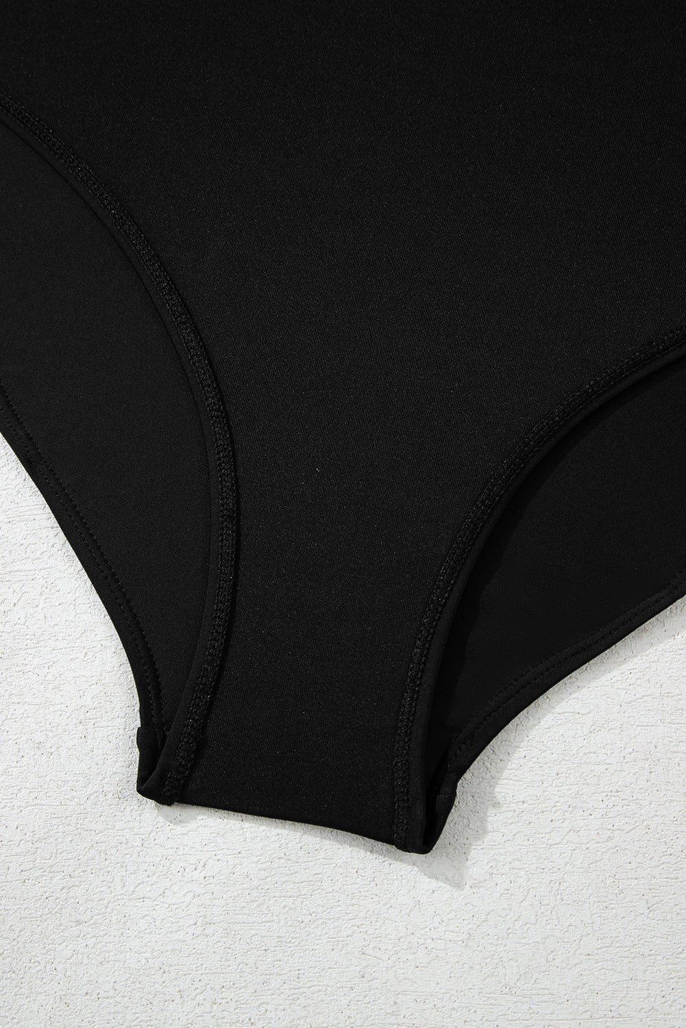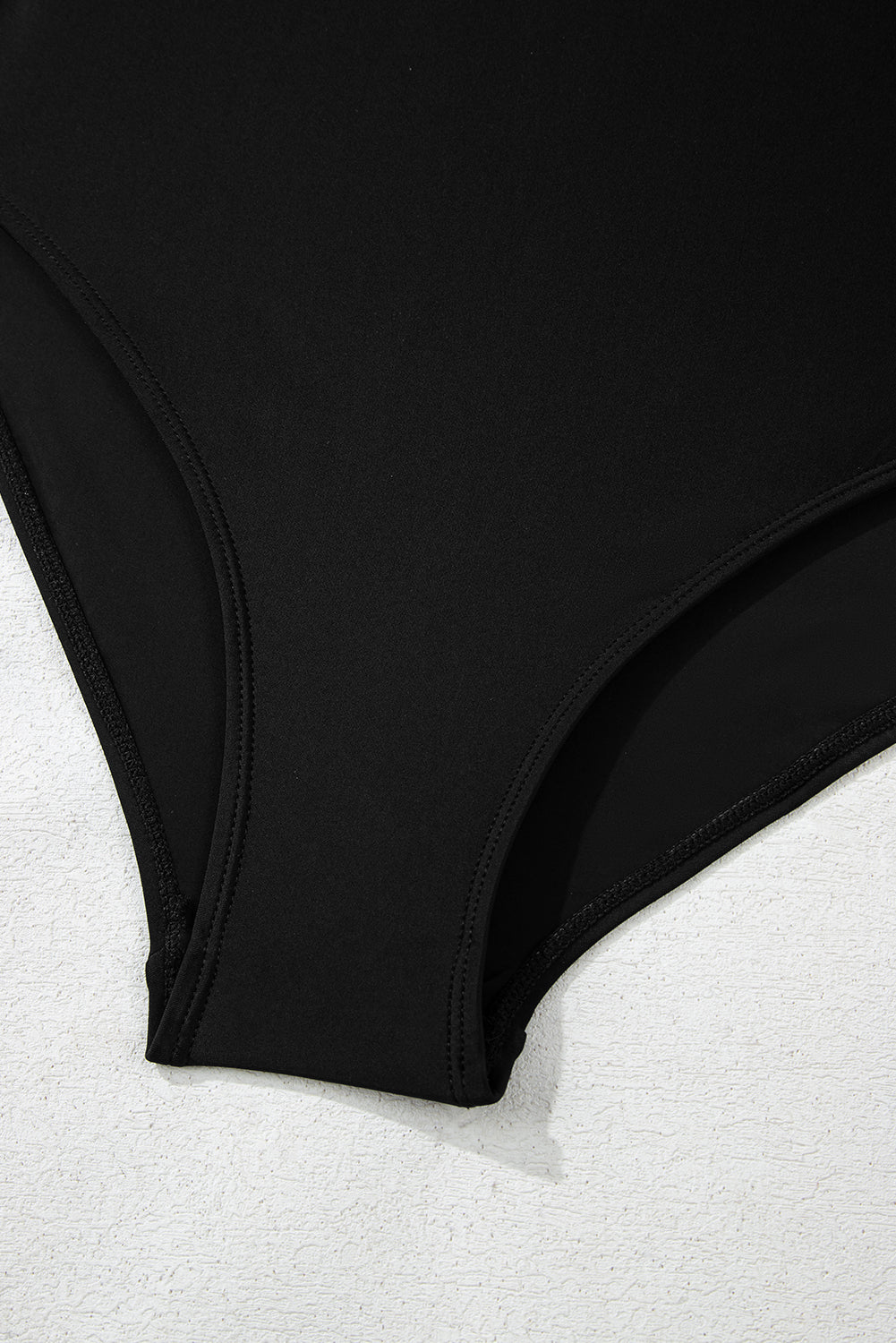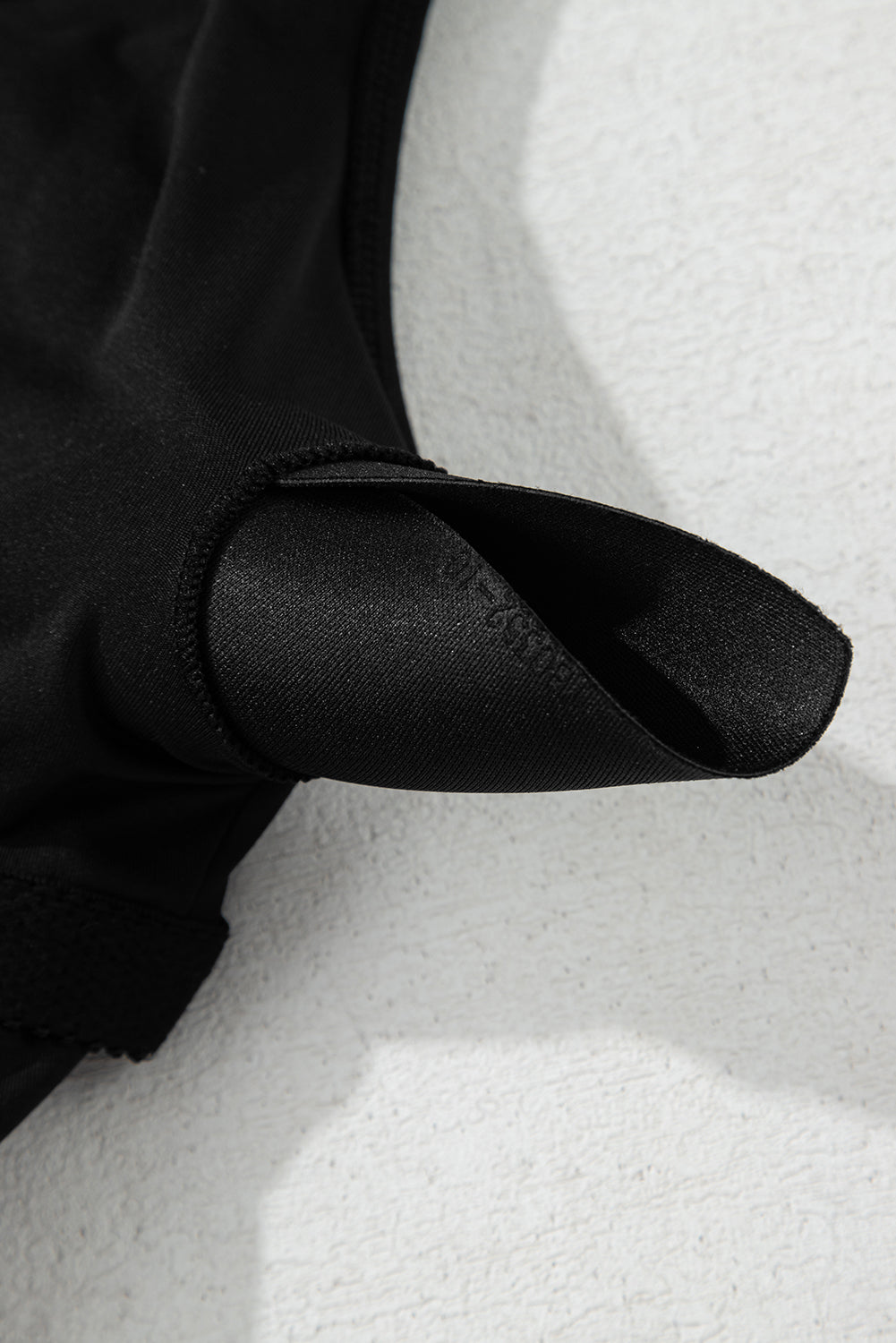 Black Side Tied Waist Square Neck Adjustable Straps A-line One Piece Swim Dress