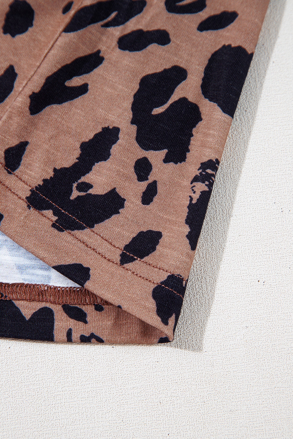 Brown Leopard Print V Neck Half Sleeve Oversized Tee