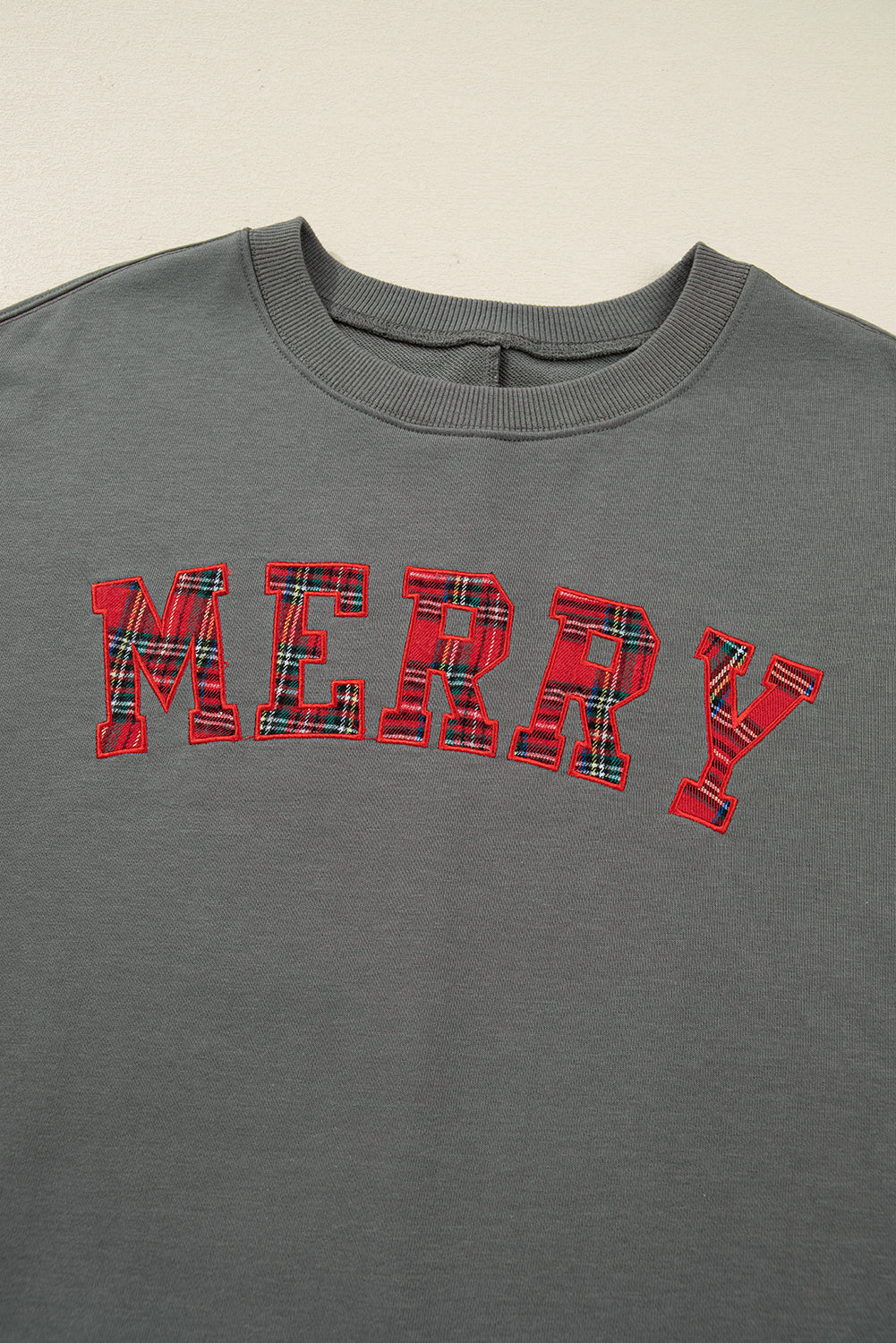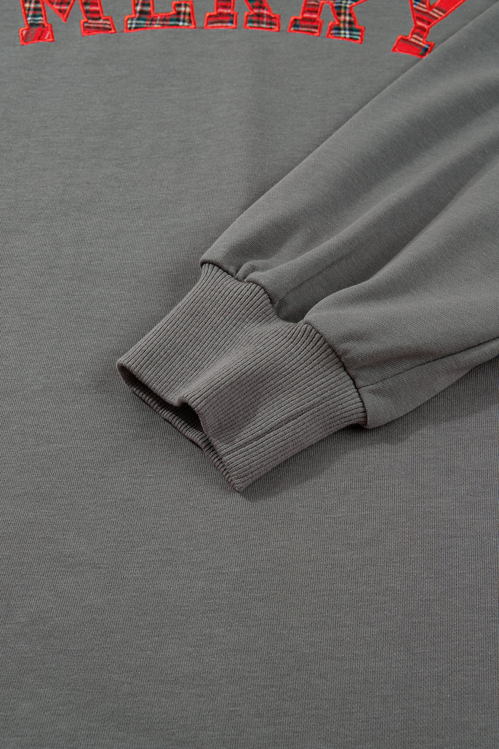 Medium Grey Plaid MERRY Bow Embroidered Plus Size Sweatshirt with Side Slits