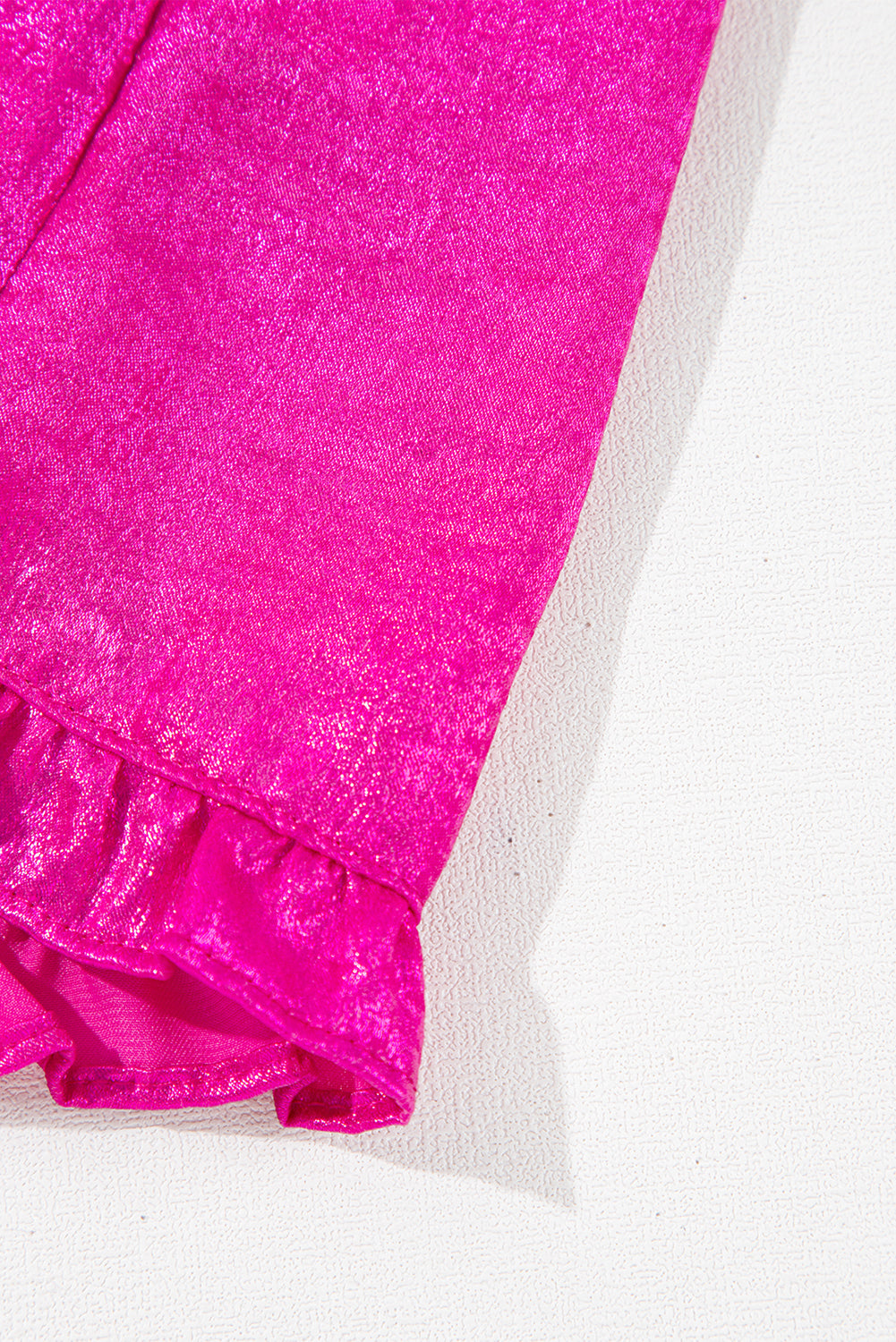 Rose Red Metallic Frilled V Neck Puff Sleeve Babydoll Blouse