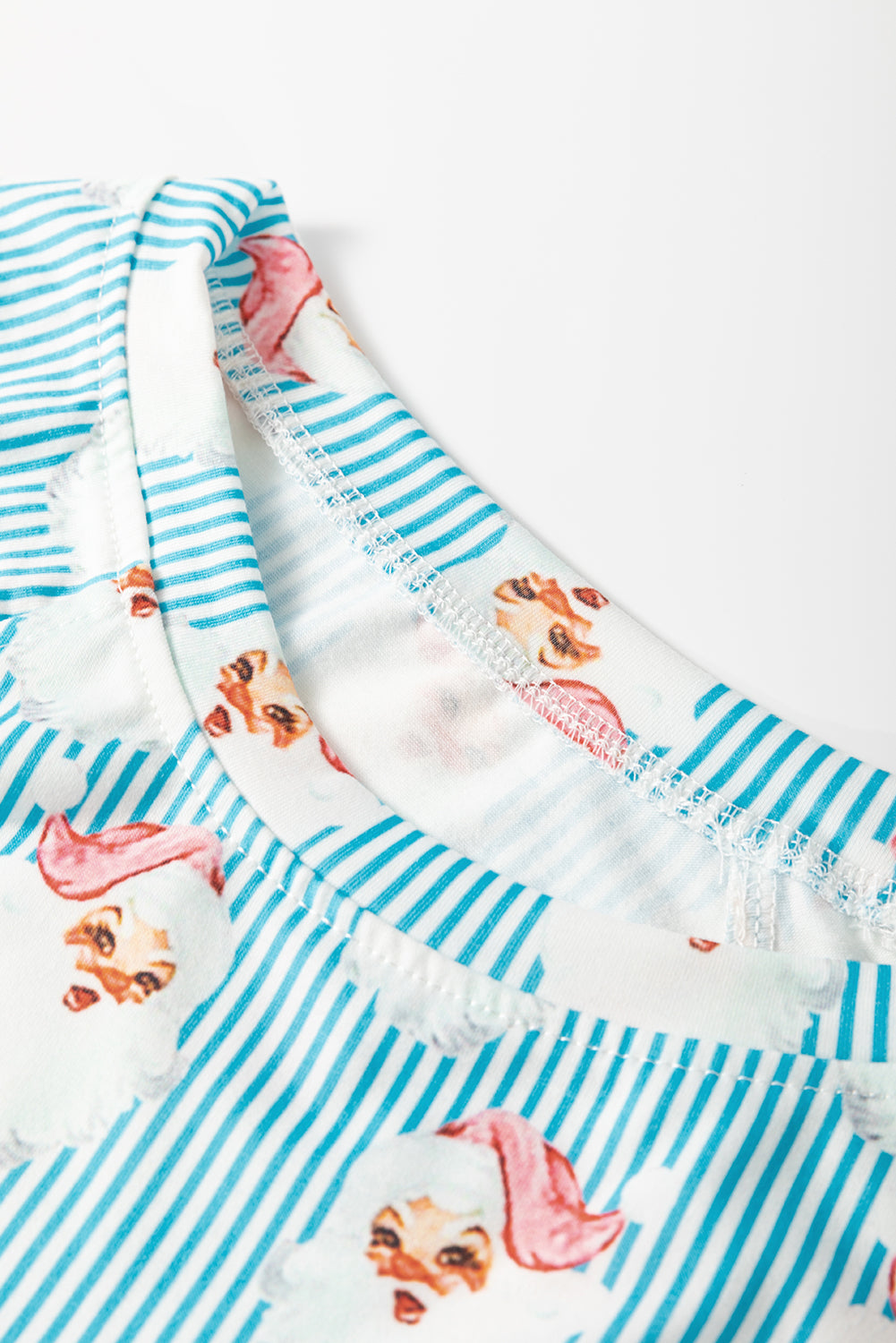 Sky Blue Santa Claus Striped Print Loose Fit Two Piece Lounge Set